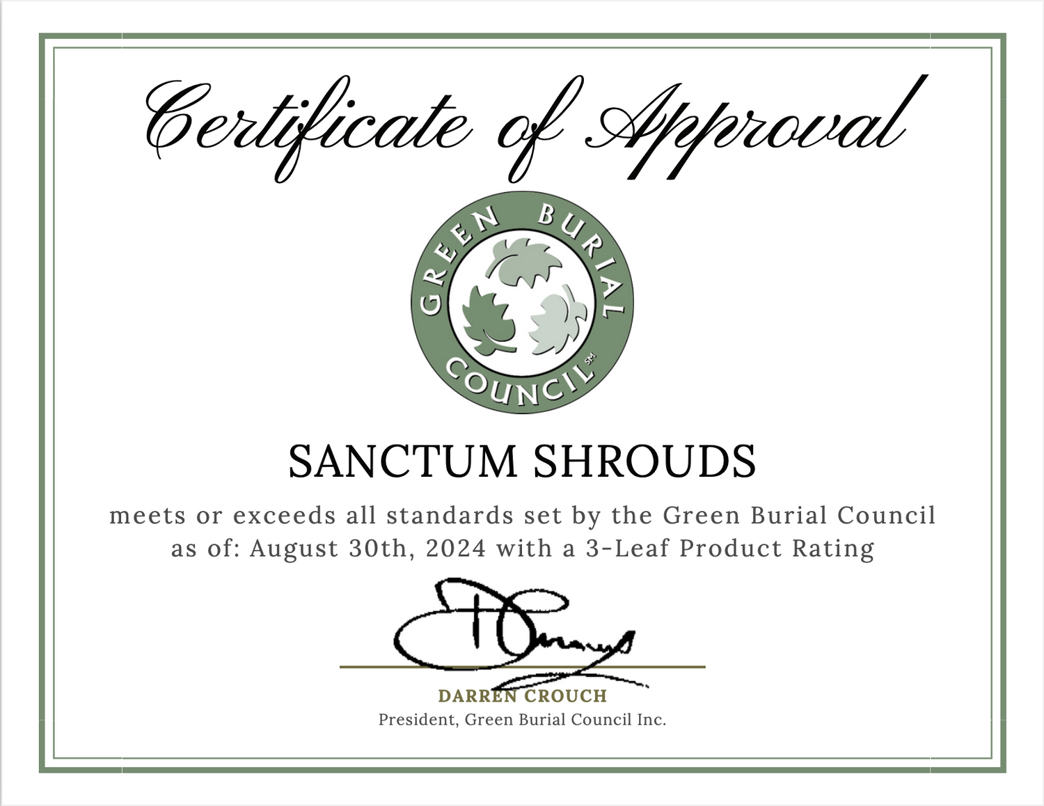 If you're looking for a way to leave a smaller footprint on the planet while also honouring your own journey or that of a loved one, consider choosing a Sanctum shroud. It's a decision you can feel good about, both for yourself, for your family and for the world around you.