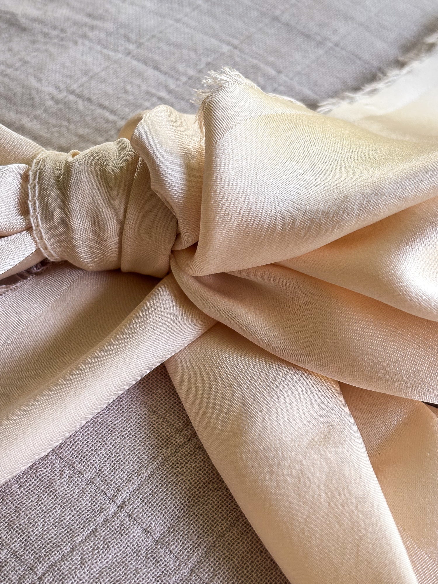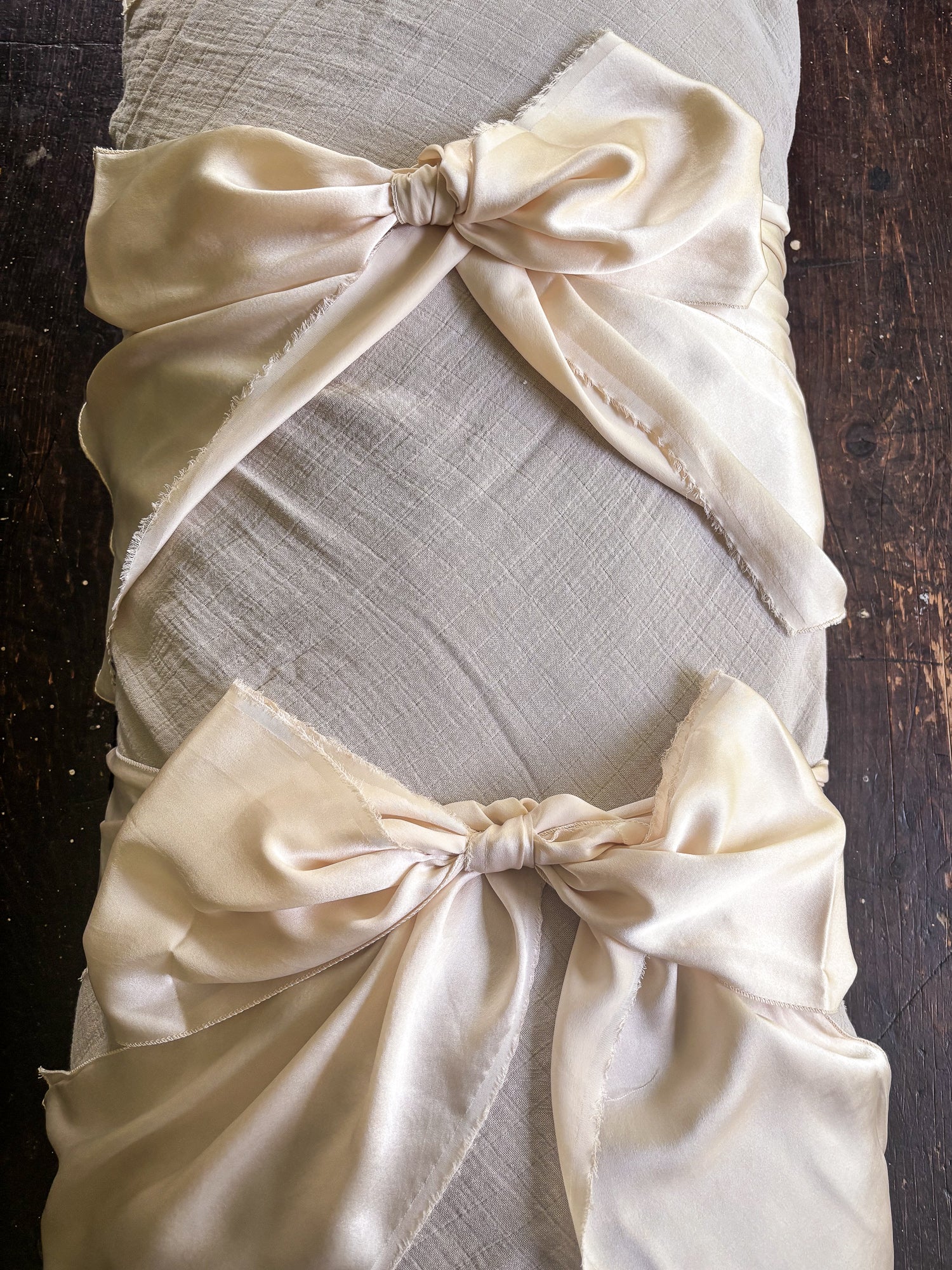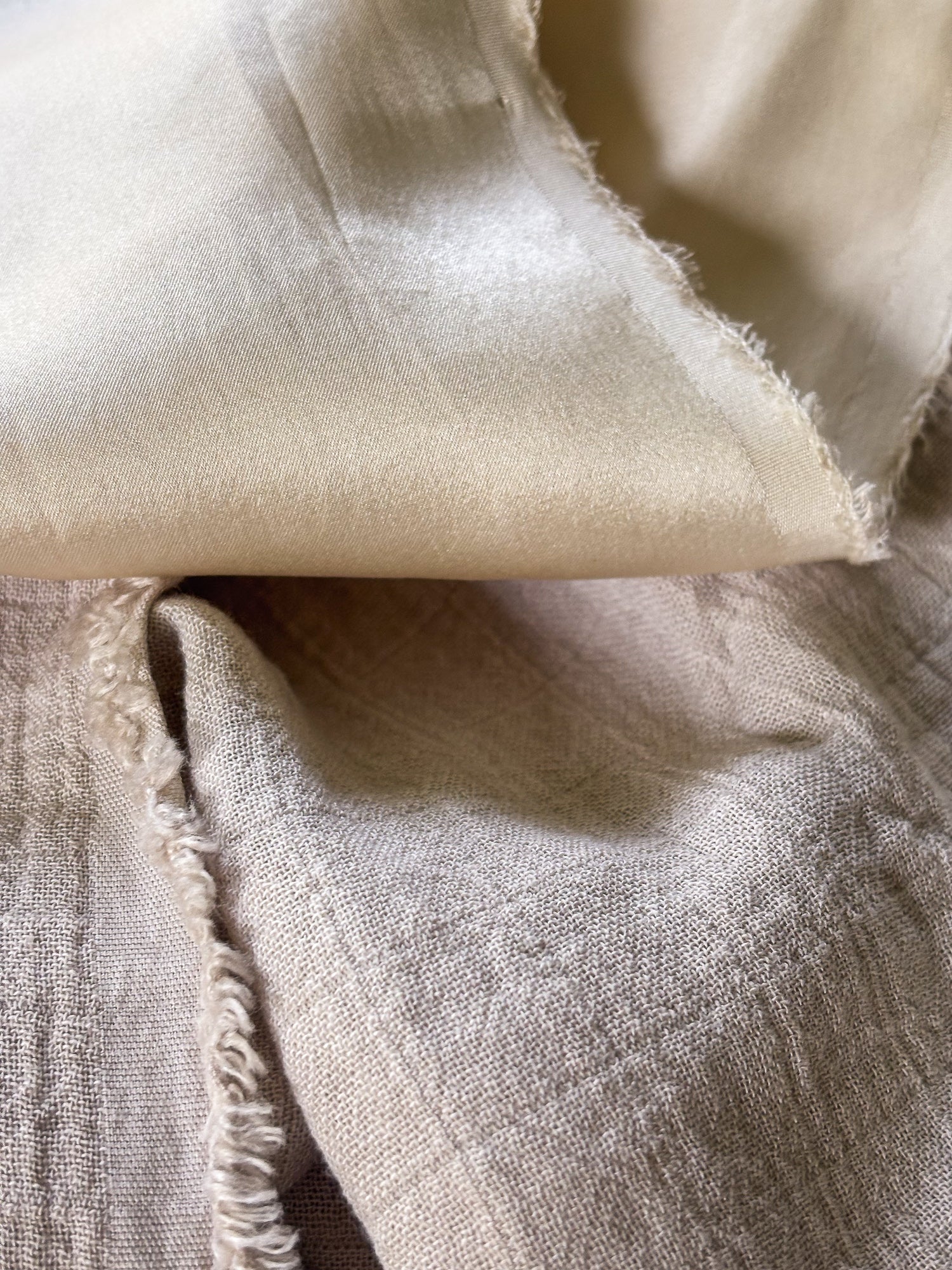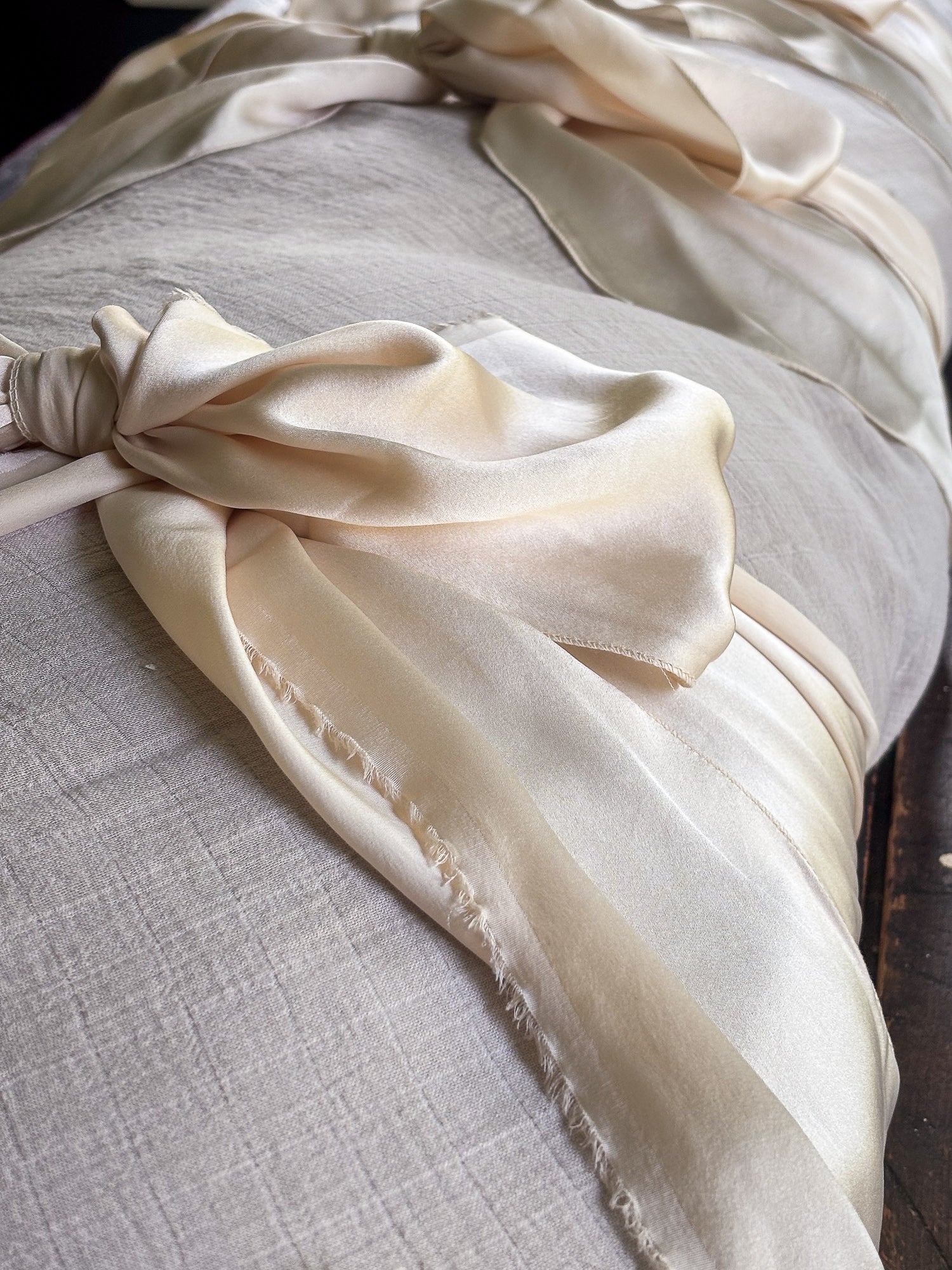 This shroud has been dipped in mulberry juices, giving it a pale silvery lavender hue. Paired beautifully with ballet pink silk mulberry ties.