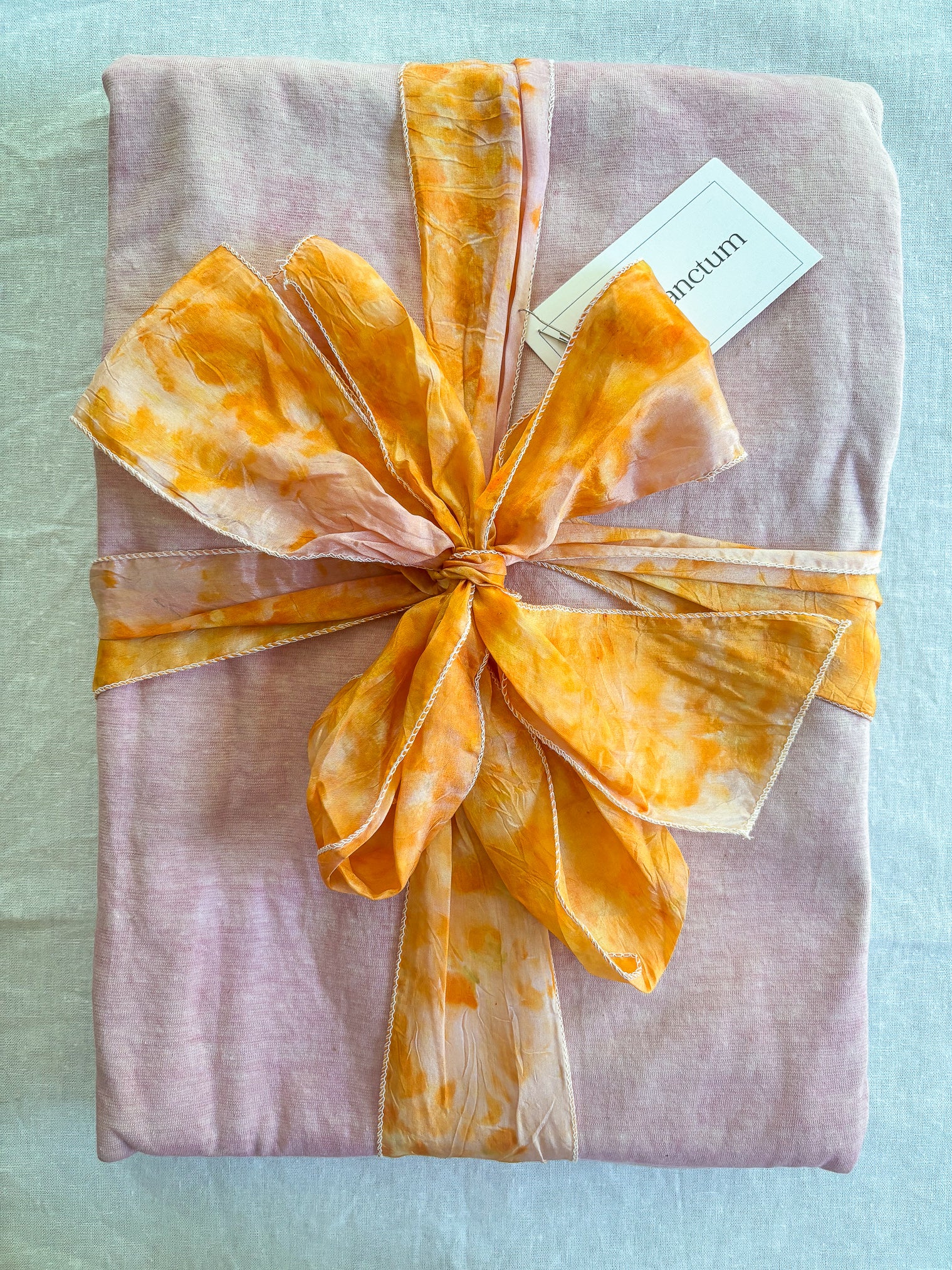 The Botanica Collection features burial shrouds dyed by hand with seasonal botanicals — goldenrod, rose, indigo, eucalyptus, onion, avocado, and more. Each piece is a singular expression of time and place, revealing the marks of nature in a soft, biodegradable cloth.